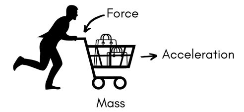 Force = Mass x Acceleration.