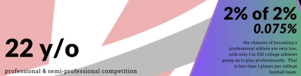The chances of becoming a professional athlete are beyond low, with only 1 in 250 college athletes going on to play professionally. That is less than 1 player per college football team, that’s less than 1 player per 20 college basketball teams, less than one player per 30 college tennis teams.