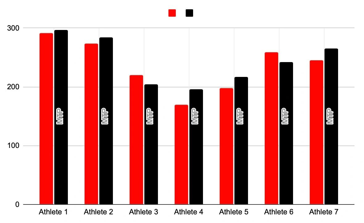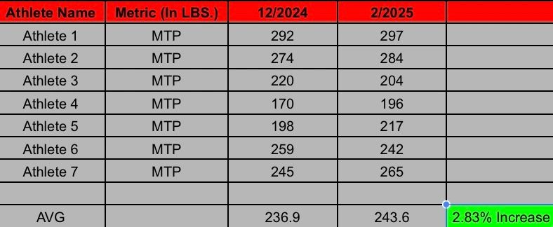 Here we can see that almost every athlete increased how much force they were able to produce with their posterior chains in this test. Thus, resulting in an overall team average of 2.83%.